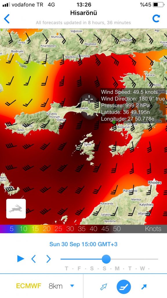 Predictwind aplikasyonunda gördüğümüz medicane tahmini